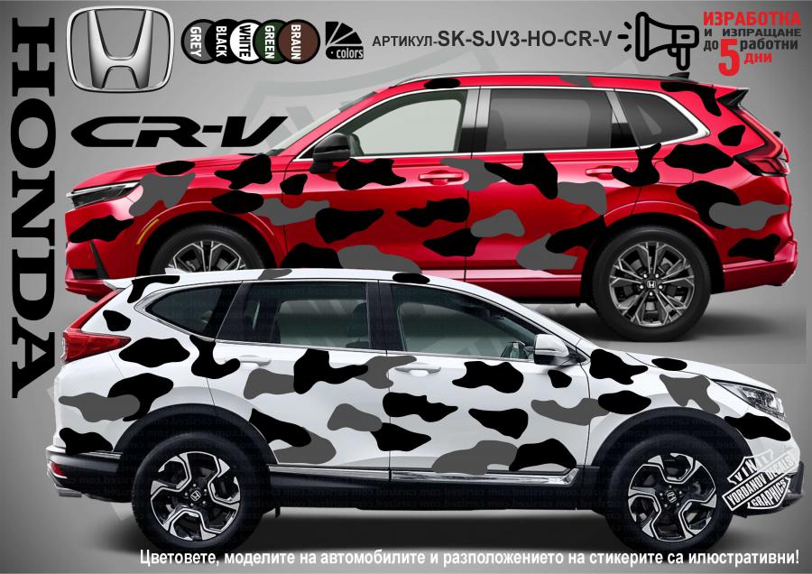 Стикер тип „камуфлаж“ - изработва се от автомобилно фолио, като представлява отделни изрязани парчета фолио и се монтират изключително лесно, едно по едно в произволна форма и шарка. Стикерите са универсални и с тях можете да облепите джип, автомобил, лодка, дори и АТВ или джет, като им предадете интересна окраска, прикриете драскотини или вдлъбнатини. Посочената цена е за 3 кв. м и до два цвята по избор. Изпращаме по Еконт.