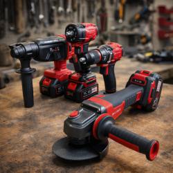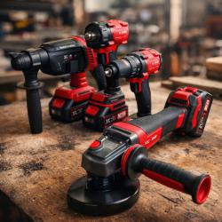 1 брой перфоратор 36V 1 брой ъглошлайф 36V 125 мм 1 брой гайковерт 1/2 36V 850Nm 1 брой винтоверт 36V 1 брой куфар 1 брой зарядно 3 броя батерии 8Ah |