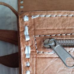 Размери 15 см * 14 см. Хубава чантичката от естествена кожа. Има три джобчета. Забележка: по ъглите реставрирано, зашито с здрави конци (две последни снимки).. Другото е наред. Доставка Спиди, Еконт или лично. |
