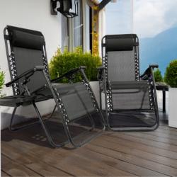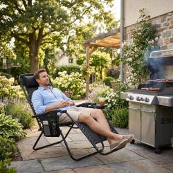 Сгъваем градински шезлонг с възглавница, поставка за напитки и джоб