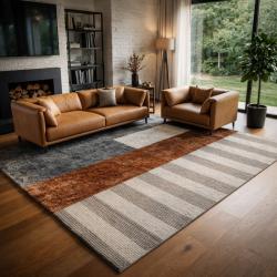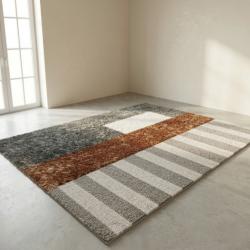 Модерен килим за хол 120х160см - Кафяв меланж с бежови райета и 3D ефе