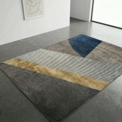 Модерен килим за хол 120х160см - Сиво с диагонална златна лента и 3D е