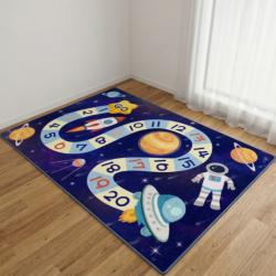Детски килим за игра 120х160см - Тъмносин килим с космос и пътека от ч