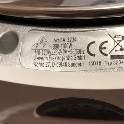 Severin mod. BA3234 1000W 115/230V цвят-син гладене и със пара сгъваема дръжка оригиналната опаковка произведена в Германия размери на кутията-110х230х100 мм. отлично състояние внос от Германия вижте и другите ми обяви |