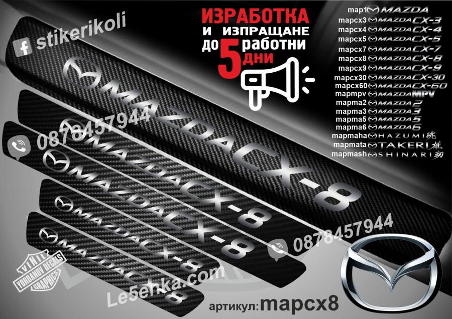 Изработват се от карбоново фолио. Прeдназначени са за автомобили които нямат декоративни прагове. Размерите са 50х5 см. за праговете на предните врати и 30х5 см. за праговете на задните врати. Изпращаме по Еконт.