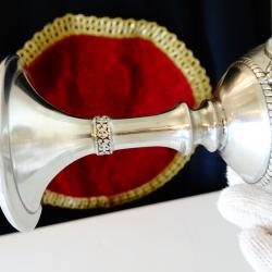 Уникален калаен бокал, влюбени, гондола, калаена сватба.
