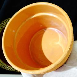 Немска дизайнерска саксия, кашпа Leni Collection Wasserdicht, ръчно изработена от качествена керамика. Има запазен етикет. Саксията е подходяща за отглеждане на кактуси и сукуленти, защото е „дишаща” – не е гледжосана. Височина 10.5 см., диаметър 12.5 см.