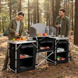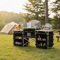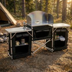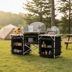 Сгъваема къмпинг кухня с 3 плота мобилна кухня за къмпинг, пикник и