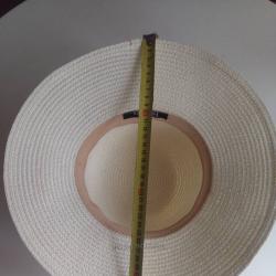 Елегантна лятна шапката. Размер 54 см, диаметър 33 см. Състоянието е перфектно. Изпрана, хигиенично чиста е Доставка Спиди, Еконт или лично. |