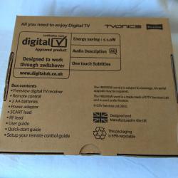 Freeview - чисто нов цифров ТВ приемник. Пълен комплект с дистанционно и книжка, захранващият кабел е с английски щепсел. Не е тестван дали ще работи в България !