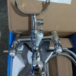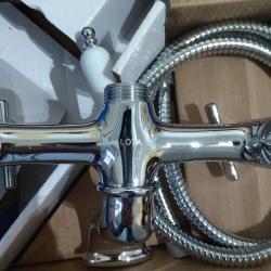 Чисто нова викторианска смесителна батерия за вана, масивна, с керамични дръжки и керамични механизми. Марката е LOTA (американска), абсолютно същият модел e като английската марка Gordale от последната снимка, и цената им е еднаква в Англия - 110 паунда. От комплекта липсва слушалката и двете части, които се закрепват към ваната, за това и цената е намалена с повече от 50%.