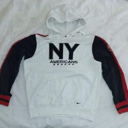 Columbia Rayon Blen - Чисто нова оригинална блуза с дълъг ръкав, размер L. Модел от 90-те години. Внесена от Англия. Цена 30 евро. NIKE - NEW YORK AMERICANS суитчър - Направен за най-известният щатски футболен отбор. Ползван, в добро състояние, единствено има 2 малки дупчици по края на джаба. Размера е по-скоро XL. Цена 30 евро. |