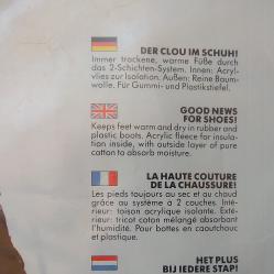 Продавам следните видове неопренови чорапи и чорапи за гумени ботуши, чисто нови, внос от Англия: 1. DAM Neoprene Line - високи неопренови чорапи, размер М, дължина на ходилото 23см. (отговарят на размер 36-37 някъде). Предпазват краката от студ и овлажняване в гумени и пластмасови обувки и ботуши, като същевременно правят стъпването по-меко и комфортно. От долу са гумирани, против плъзгане. Цена 16 евро (снимки 1, 2 и 3) 2. Bama - къси чорапи, номер 40-41, дължина на ходилото 26см. Предпазват краката от студ и овлажняване в гумени и пластмасови обувки и ботуши, като същевременно правят стъпването по-меко и комфортно. Акрилен полар за изолация, с външен слой от чист памук за абсорбиране на влагата. Цена 11 евро (снимки 4, 5 и 6) 3. Високи неопренови чорапи, но няма номер на тях, дължина на ходилото 26см. (около 40-ти номер). Предпазват краката от студ и овлажняване в гумени и пластмасови обувки и ботуши, като същевременно правят стъпването по-меко и комфортно. Цена 7 евро (снимки 7 и 8) |