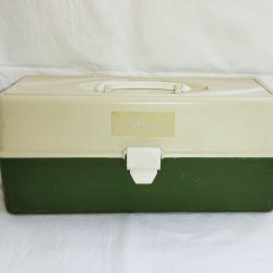 Продавам американско рибарско куфарче MALIBU (ретро модел, направено от здрава пластмаса, много добро състояние, няма пукнато или счупено) с размери 33 х 14.5 х 14.5 см, внесено от Англия. С куфарчето вървят и 62 плувки, ваглери и слайдери, почти всички от които са английски (от марките JOHN WILSON, LEEDA, DRENAN и др), има няколко български (на TOP FLOAT, BOBI FISHER, MOCHKOV и др) и няколко ръчно правени. Почти всички плувки са нови, 30 от тях са лакирани допълнително с UV лак Луретан против UV лъчи, и за да станат по-здрави и да не се лющят.