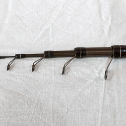 Качествено болонезе, изработено от високомодулен HM2 карбон, тънки бланки. Лека, много здрава и издръжлива, 6 секции, дължина 6 м, транспортна дължина 137 см, прогресивна акция 10-30 гр, 8 броя SIC водачи, от които 2 подвижни (с карбонови втулки), тегло 256 гр. Пръчката е малко ползвана, има няколко съвсем леки следи от употреба, предимно по долната част на дръжката. Вече се дава с друг предпазител за водачите, не този от снимките. Цената е намалена и крайна - окончателна!