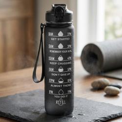 Черна мотивираща бутилка за вода 1L с почасова скала пий вода наврем