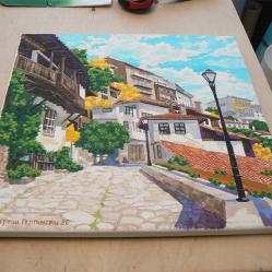 Пейзаж от Велико Търново. Маслени бои върху платно. Размери 40 на 40 см. Нарисувана е 2020 година. Художник мАРТгер.