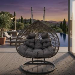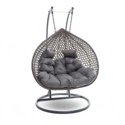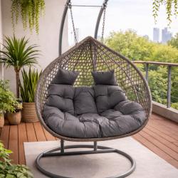 Двойна висяща ратанова люлка тип пашкул с метална рамка и възглавница