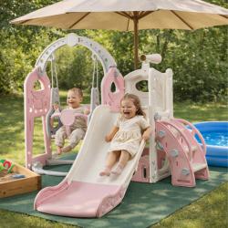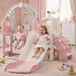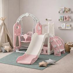 Детска пързалка с люлка 4 в 1 за дома и двора, стабилна и безопасна