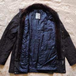 Тъмнокафяво мъжко яке от естествена кожа Angelo Litriko. Размер по етикет ХXL. Измерени: рамо - 54 см., подмишници - 70 см., височина до яката (гръб) - 80 см., ръкав външно - 68 см., ръкав втр. - 50 см. Два външни джоба и един вътрешен. Двойно закопчаване - цип и "тик-так" копчета. Сваляща се яка от каракул. Подходящо и за делово/официално облекло. В отлично състояние (като ново). Цена - 45 евро.